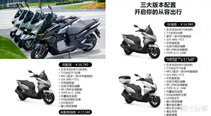 以Pro版为例,该车会采用七英寸全彩仪表、支持NFC/蓝牙在内的SMK智能无钥匙启动系统、另有双通道ABS、TCS牵引力控制、半热熔轮胎、胎压监测、运动相机互联等基础软硬件。